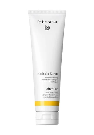 Mit der Lotion Nach der Sonne hat Dr. Hauschka eine reichhaltige und kühlende Formulierung konzipiert, die die Haut nach dem Sonnenbad beruhigt und pflegt. Angereichert mit hautberuhigenden Auszügen der Mittagsblume, Quittensamen, Karotte und Hagebutte erfrischt und entspannt die angenehme Textur die von der Sonne leicht gereizte und ausgetrocknete Haut und sorgt dafür, dass die Bräune länger erhalten bleibt. Ringelblume und Wundklee beruhigen zusätzlich, während Mandelöl, Sheabutter und Rosenwachs intensiv pflegen und der Haut dabei helfen, die Feuchtigkeit zu bewahren. Die Haut fühlt sich geschmeidig und optimal gepflegt an.